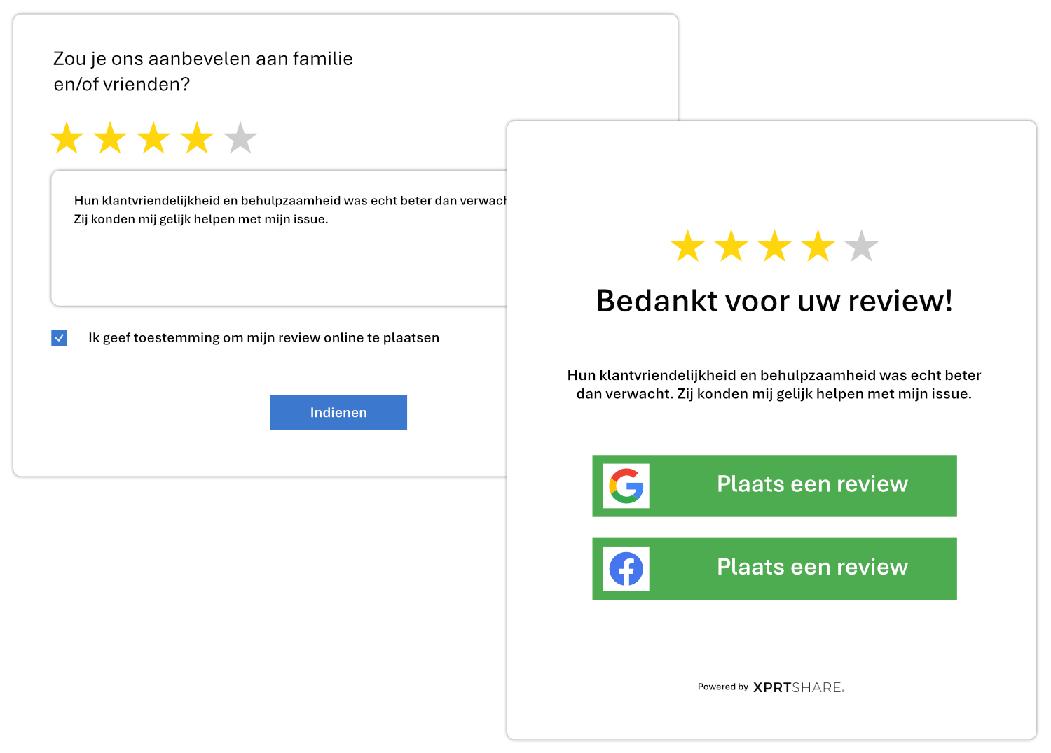 Het verzamelen van reviews is nu eenvoudig en moeiteloos. Bovendien kun je enquête-antwoorden omzetten in reviews, waardoor het voor klanten nog makkelijker wordt om hun feedback online te plaatsen.
